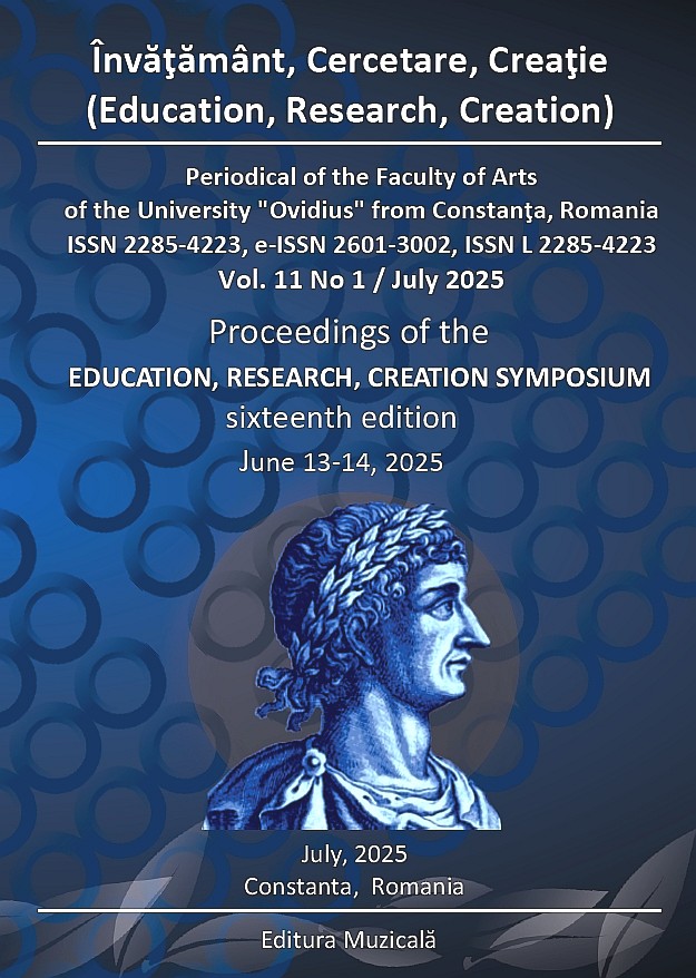 It gives me a great pleasure to present you the 11th volume (No. 1/2025) of the “Învăţământ, Cercetare, Creaţie”, periodical of the Faculty of Arts of the University “Ovidius” from Constanţa, Romania, indexed in ERIH PLUS and CEEOL.